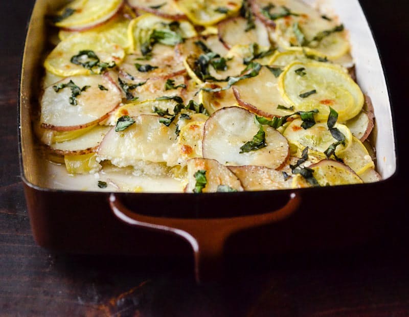 Gratín de patata, calabaza y queso de cabra